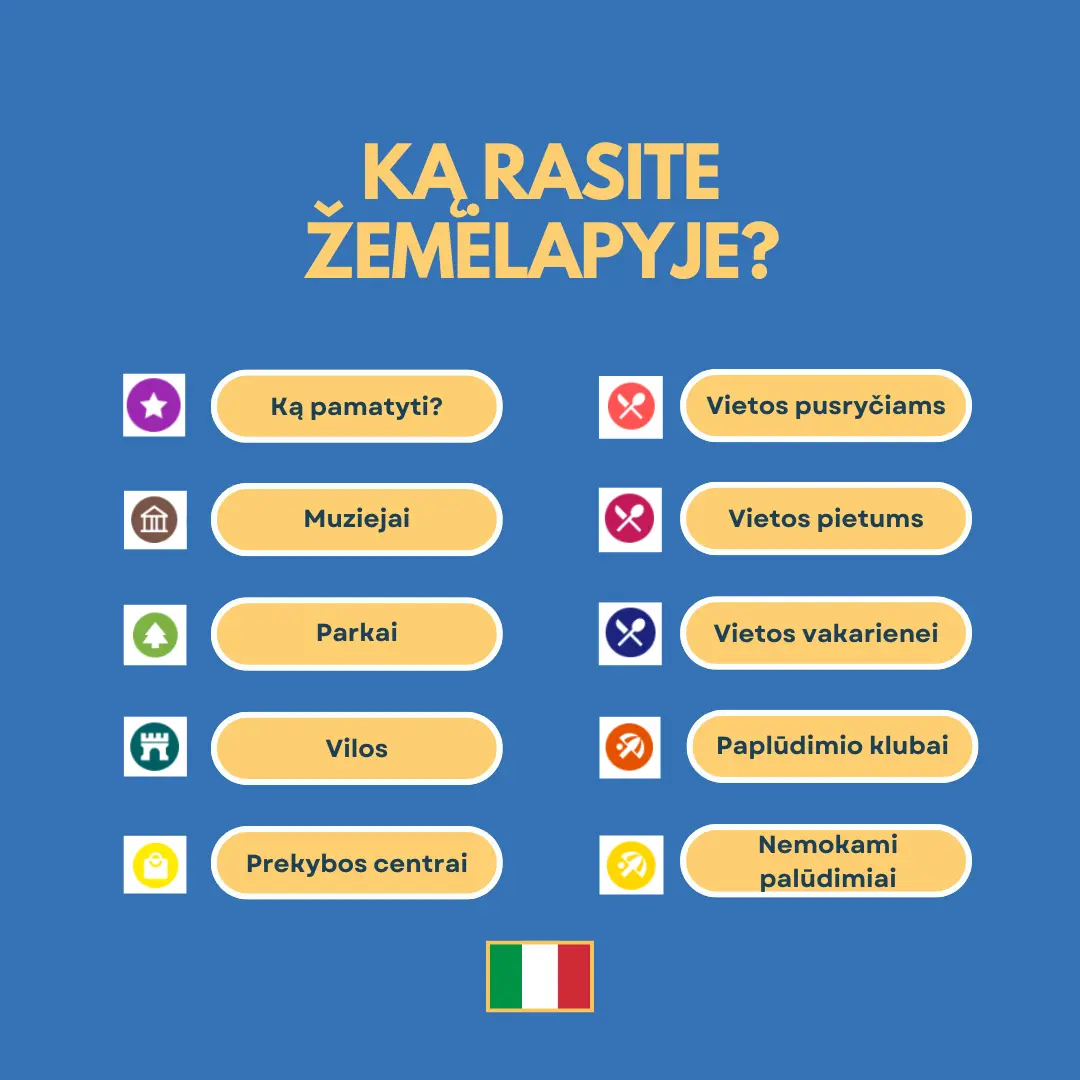 Pasirūpinau, kad žemėlapyje būtų įtrauktos mokamos ir nemokamos pramogos, viešbučiai, prekybos centrai, parkai, muziejai kiti populiarūs, turistų mėgiami objektai. Šis Milano + Komo kelionės žemėlapis padės suprasti miesto išplanavimą ir lengviau susigaudyti naujoje vietoje. O geriausia yra tai, kad žemėlapį galėsite atsidaryti ir naudoti savo telefone. Be streso sekite mano žemėlapyje sužymėtas vietas ir drąsiai vaikščiokite po Milano ir Komo miestus, nebijodami juose pasimesti. Keliauti dar niekada nebuvo taip paprasta.