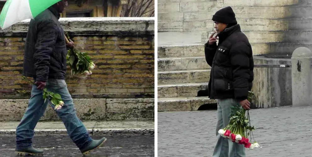 Šis scam’as yra taikomas porelėms. Kažką panašaus turime Palanoje, bet atliekama ne taip aršiai. Užsienyje, dažniausiai prie porelių prieina moteris, kuri krepšelyje nešioja gėles/žaislus. Priėjusi, ji tiesiog įteikia dovaną merginai, o vaikino reikalauja sumokėti. Kadangi mergina jau laiko dovaną – nėra kelio atgal ir tenka susimokėti tokią sumą, kokios pareikalauja moteris.